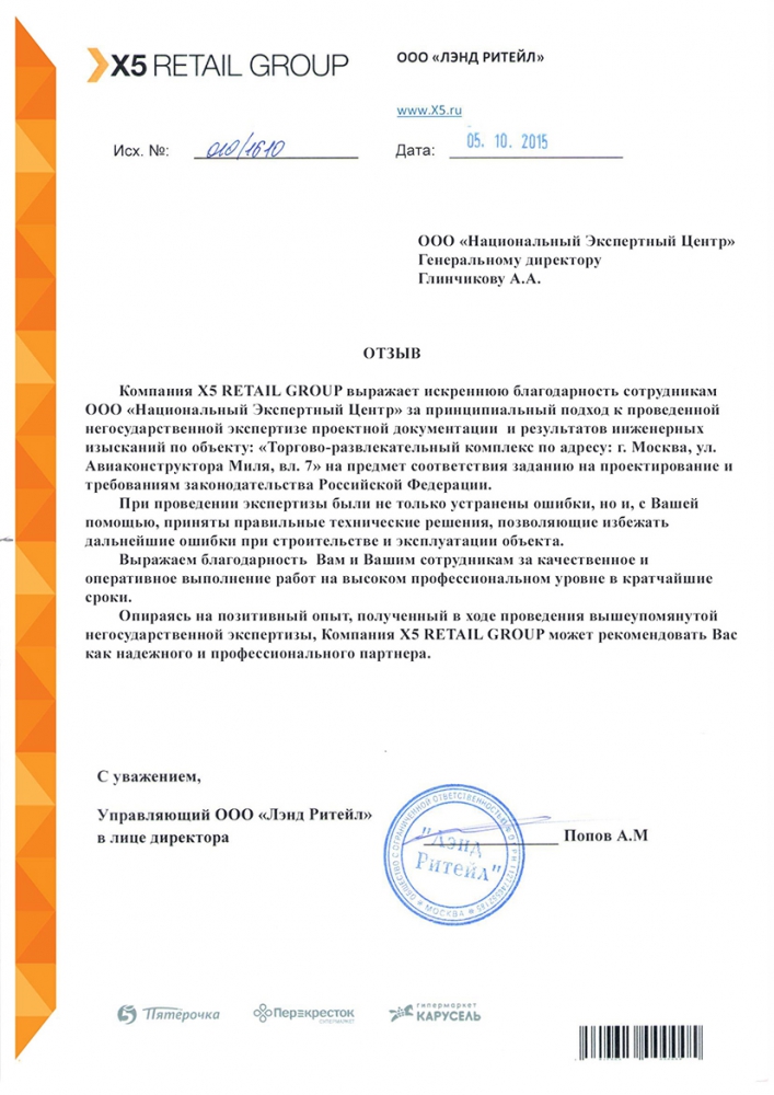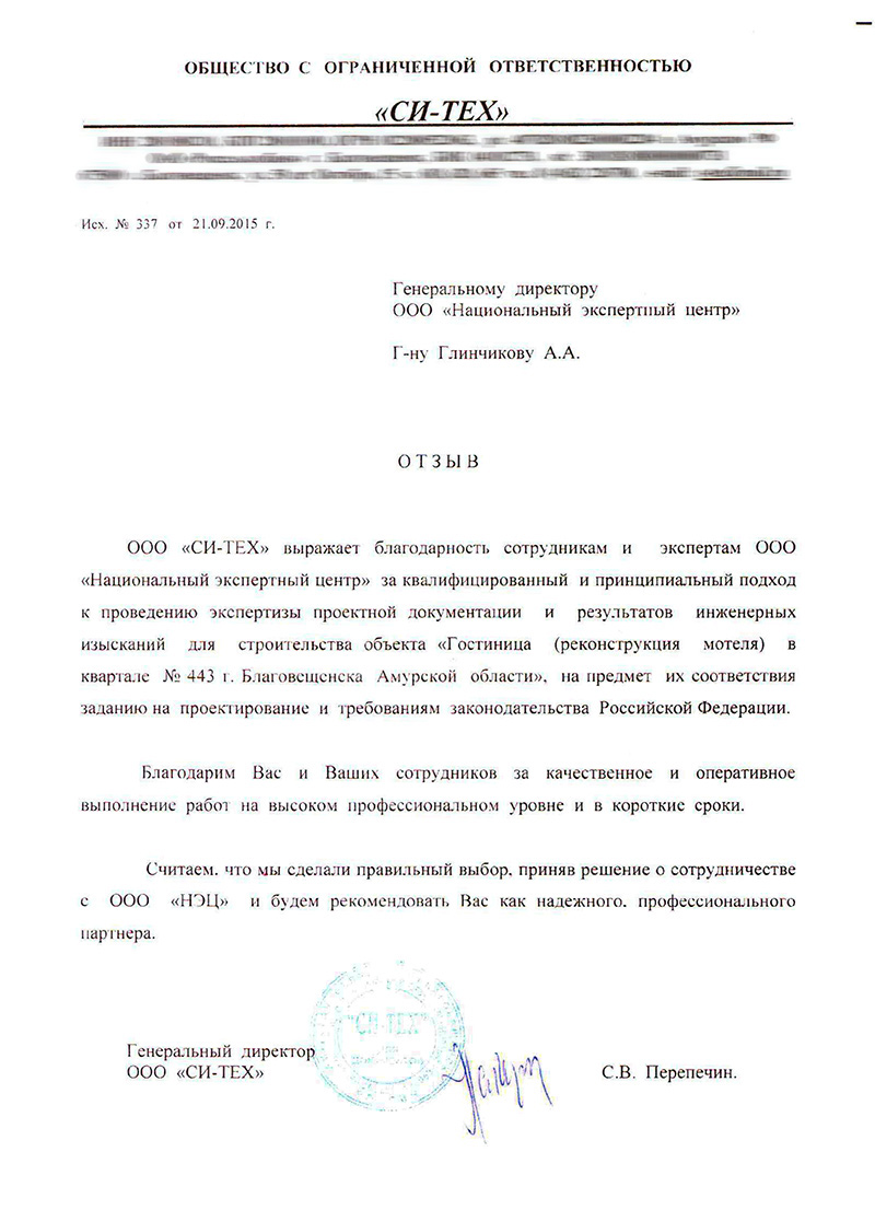 В 100% случаях полученных положительных экспертиз Заказчики получили разрешения на строительство (реконструкцию) в различных регионах Российской Федерации, при этом ни разу не потребовалась доработка (или даже корректировка) выданного экспертного заключения;